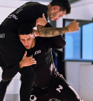 El Grappling es una disciplina de combate enfocada en la lucha sin gi o kimono, combinando técnicas del Jiu-Jitsu, la lucha libre y el sambo. Aquí trabajarás derribos, control de posiciones y sumisiones, pero sin las agarraderas del kimono, lo que lo vuelve más rápido y dinámico. Es perfecto para quienes buscan mejorar su rendimiento en competiciones de sumisión o en artes marciales mixtas.